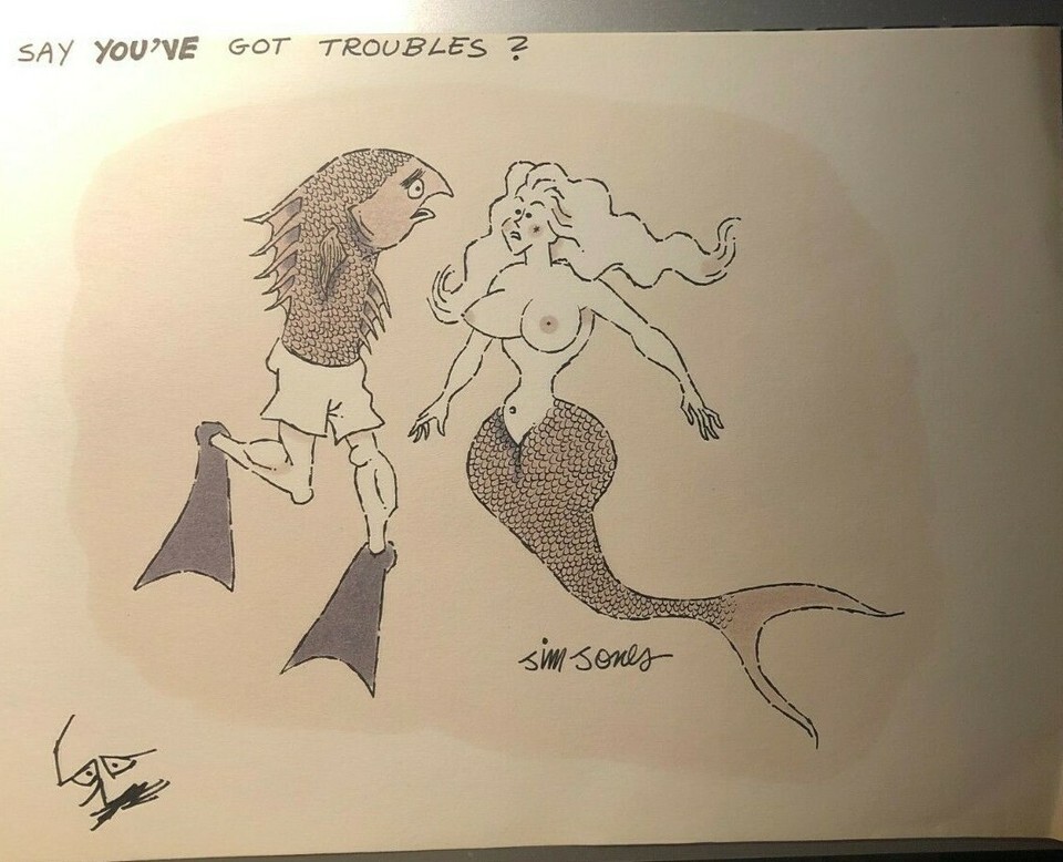 MERMAID vintage signed 9" x 12" Jim Jones risque magazine illustration