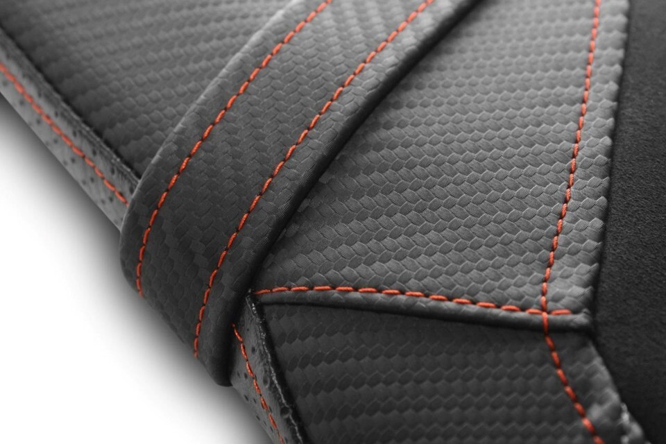 The MT-09 Corsa seat cover is hand made with all our finest materials. It features a luxurious Suede Black top rider area stitched with Corsa ribbing. Anti-slip Tec-grip thigh panels add grip and confidence to your ride during hard braking and acceleration. Marine-grade leather, perforated look vinyl and contrast stitching add additional style points. Stand out with the finishing touch of Luimoto.