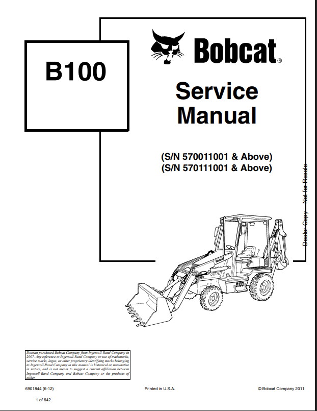 Genuine Bobcat B100 Backhoe Loader Digital Service Manual, 6901844 PDF provides the owner or operator with detailed service information including adjustments, diagnosis, disassembly, repair and reassembly instructions for the B100 Backhoe Loader.