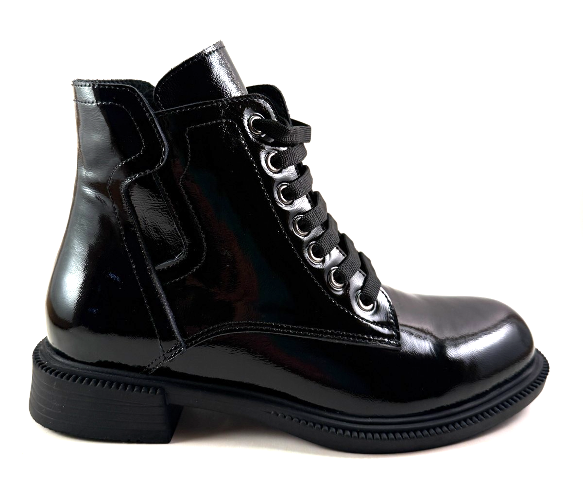 BoNavi 037-392-525 Black Patent Leather Low Heel Lace Up Ankle Bootie