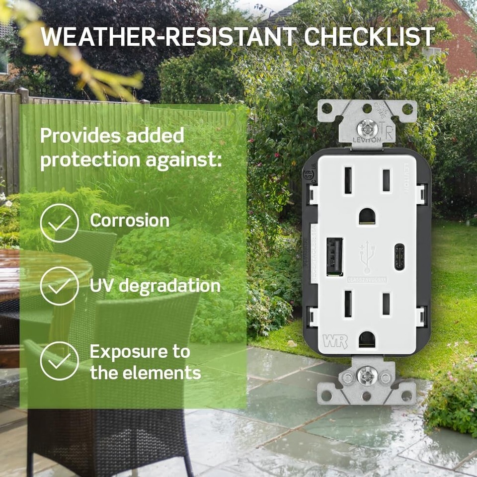 Leviton Type A & Type-C USB In-Wall Charger with 15A Tamper-Resistant Outlet, O