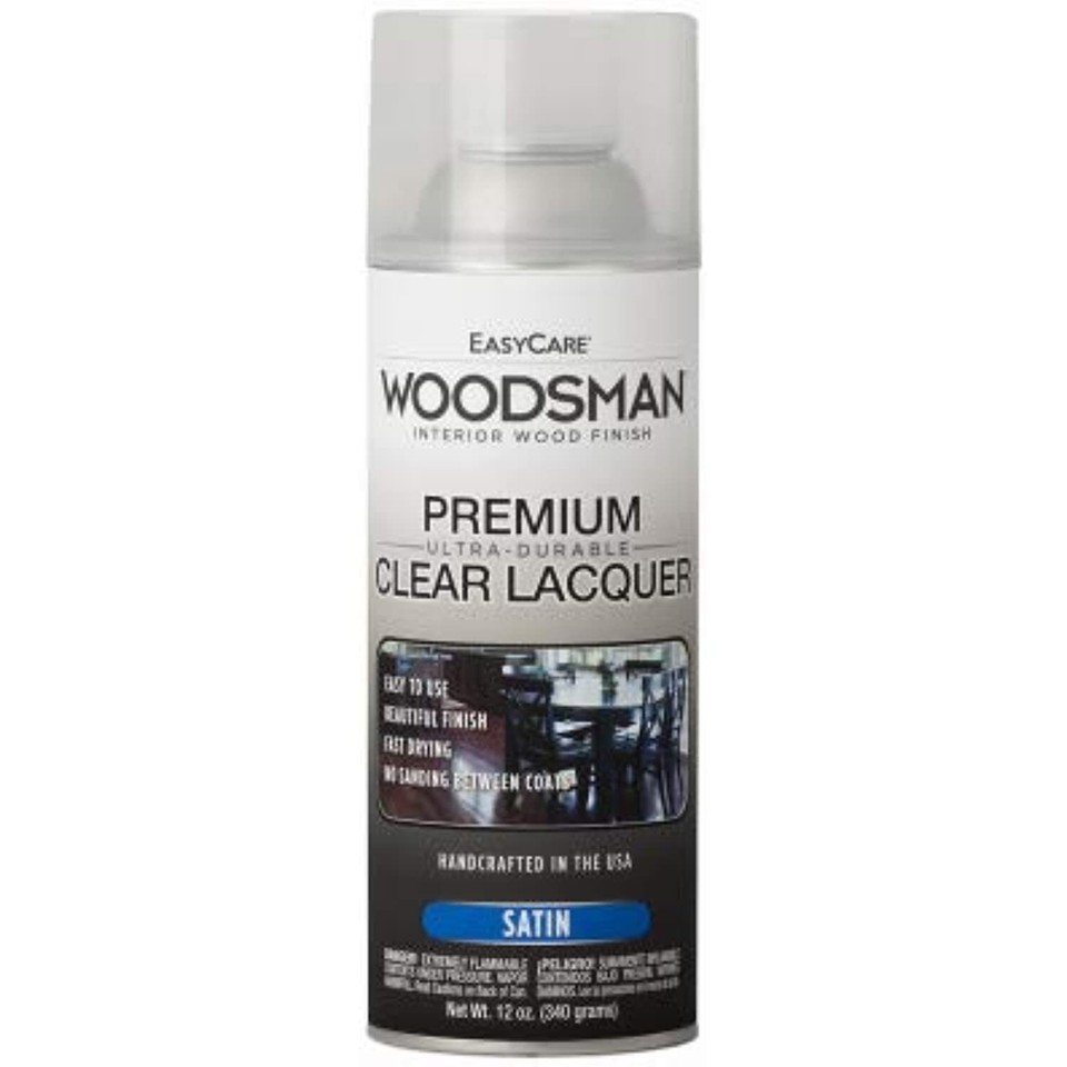 LQ39-AER, Easycare Woodsman, 12 OZ, Clear Spray, Satin, Lacquer, Protective Finish For Wood and Metal, Dries To The Touch In 30 Minutes, Ensuring A Smooth, Dust Free Finish, Requires No Sanding Between Coats, Great For Woodwork, Cabinets, Furniture and Doors.