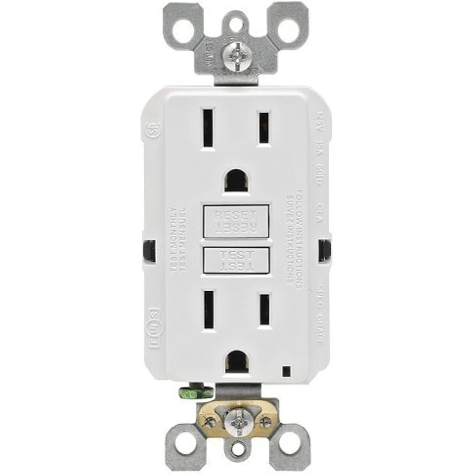 Automatic testing Pro slim GFCI receptacle, monochromatic, back and side wired, with self-grounding clip included. If no GFCI protection is present, the receptacle will render itself inoperable. This product is manufactured in Canada.