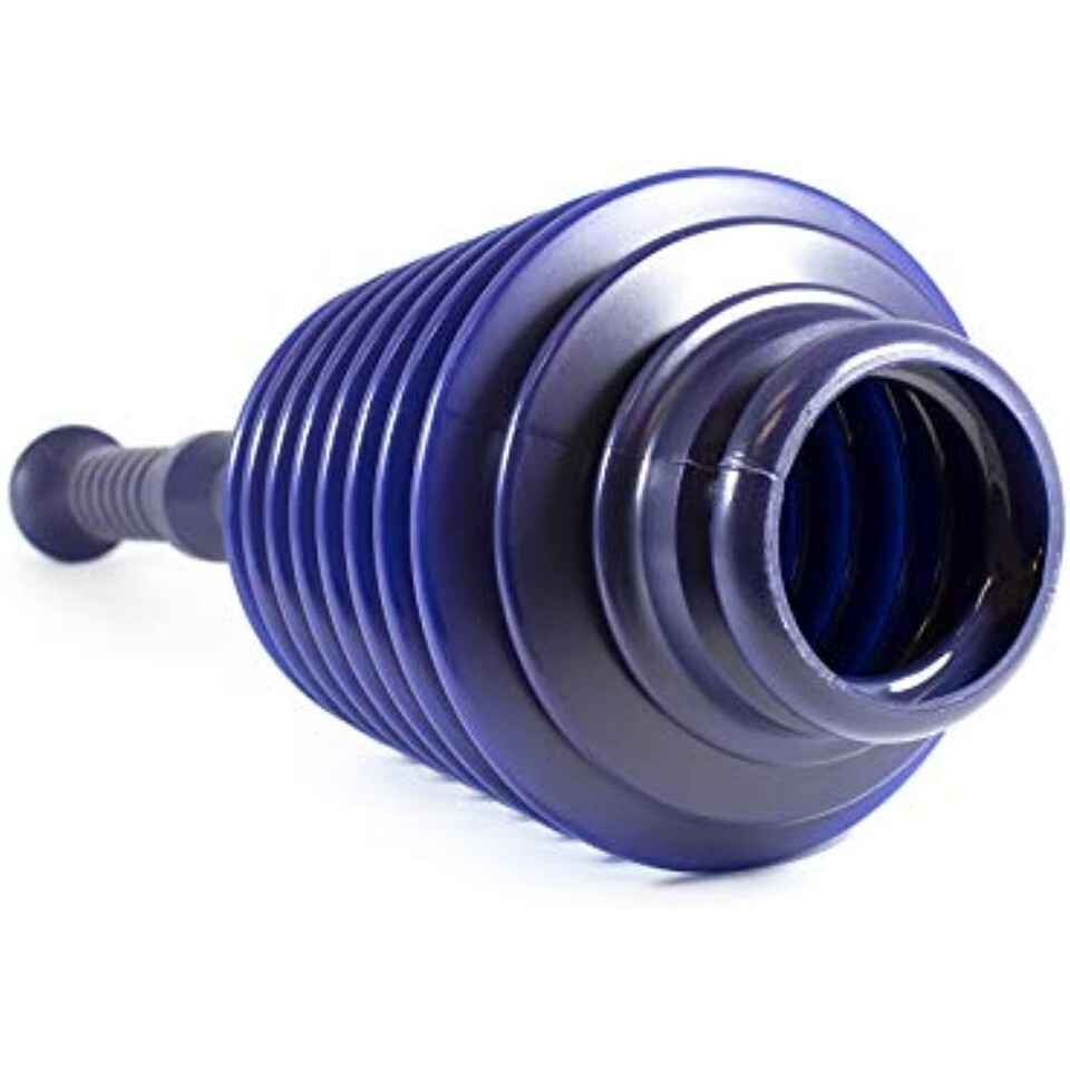 Product Description The bellows design delivers more plunge per push than any other plunger on the market -- 7 times the displacement of the rubber cup plunger. From the Manufacturer This master plunger has more plunge per push than any other plunger on the market. 7 times the displacement of the rubber cup plunger. Comes in blue.