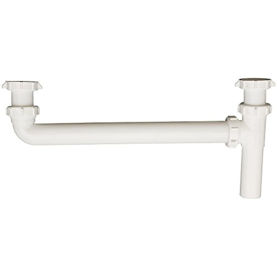 Plumb Pak end outlet continuous waste slip joint and direct connect 16-inch with tee is constructed of durable, white plastic. Other features include c to e with baffle tee design, slip joint or direct connect, and package includes all necessary nuts and washers.