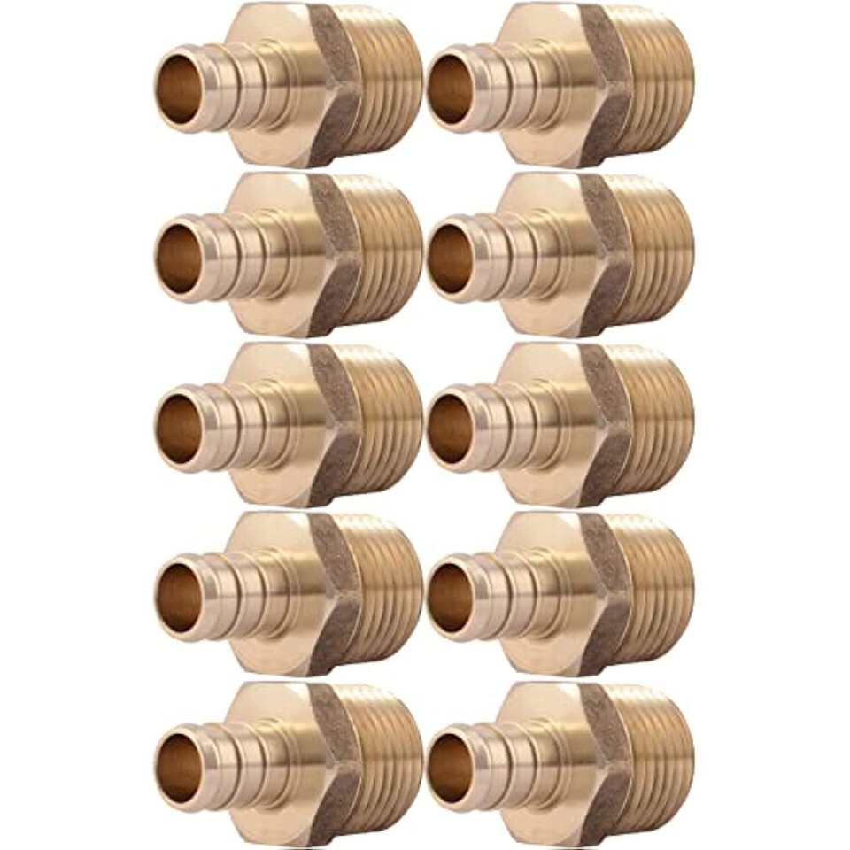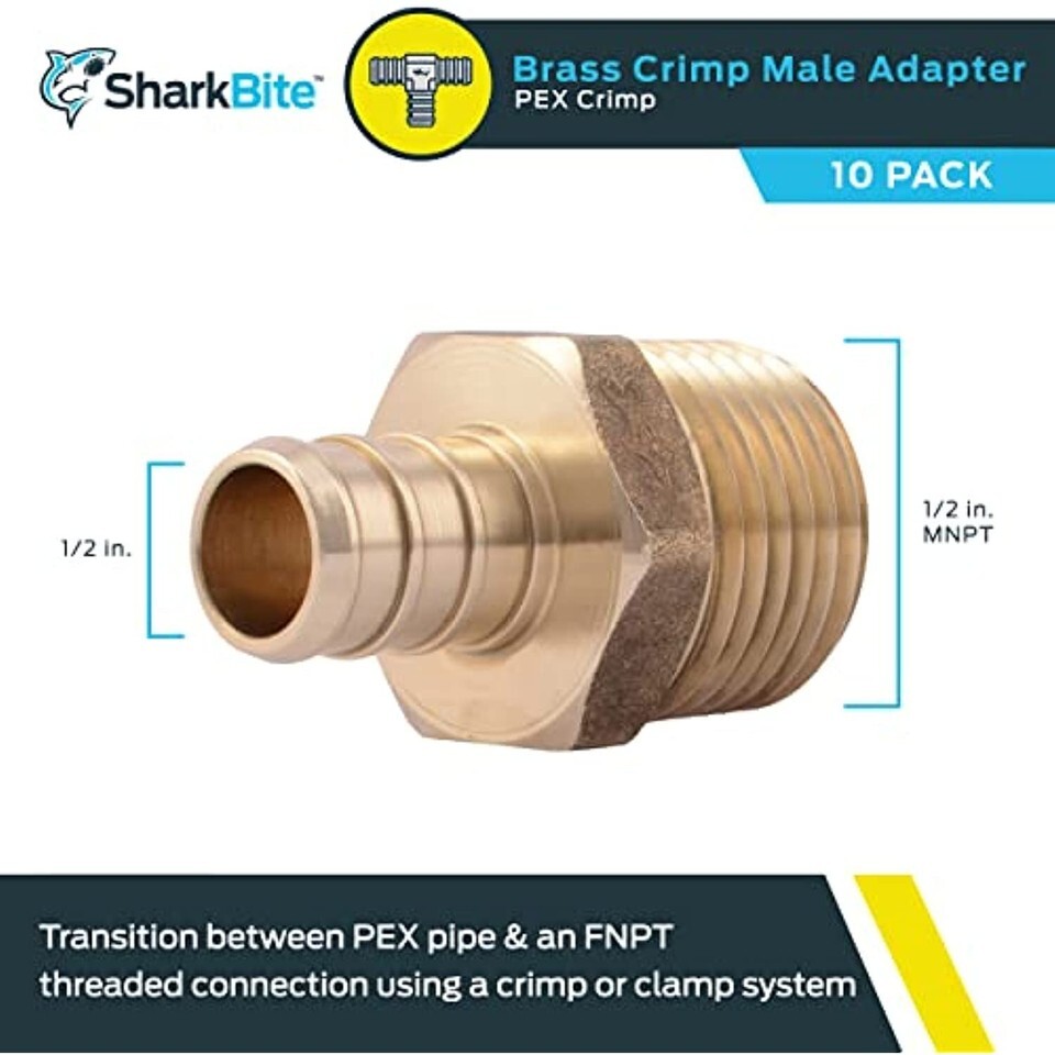 SharkBite 1/2 Inch Crimp MNPT Male Adapter, Pack of 10, Brass Plumbing Fitting, PEX Pipe, Copper, UC120LFA10