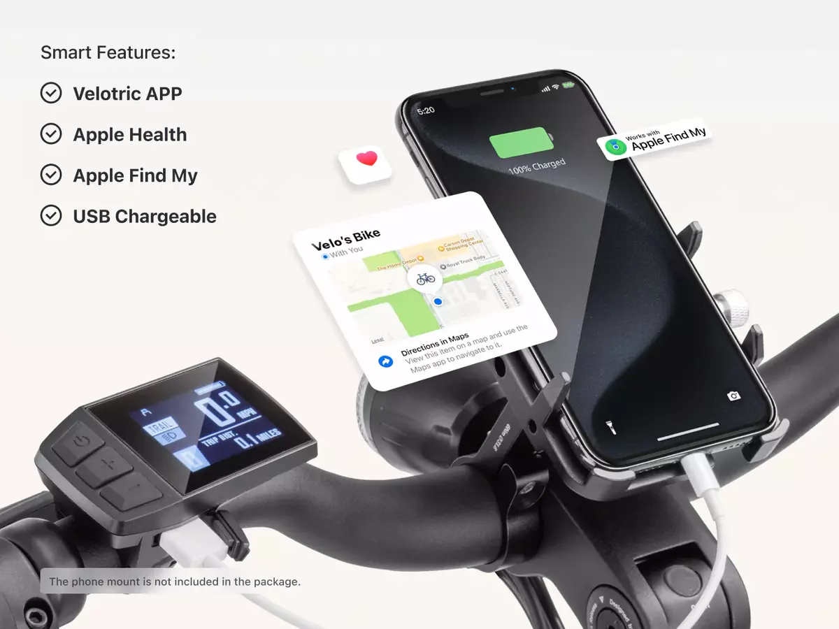 Enjoy a smarter-than-ever ride by using the Velotric App and integrating Apple Health to your ride. Plus, secure your bike with Apple Find My.