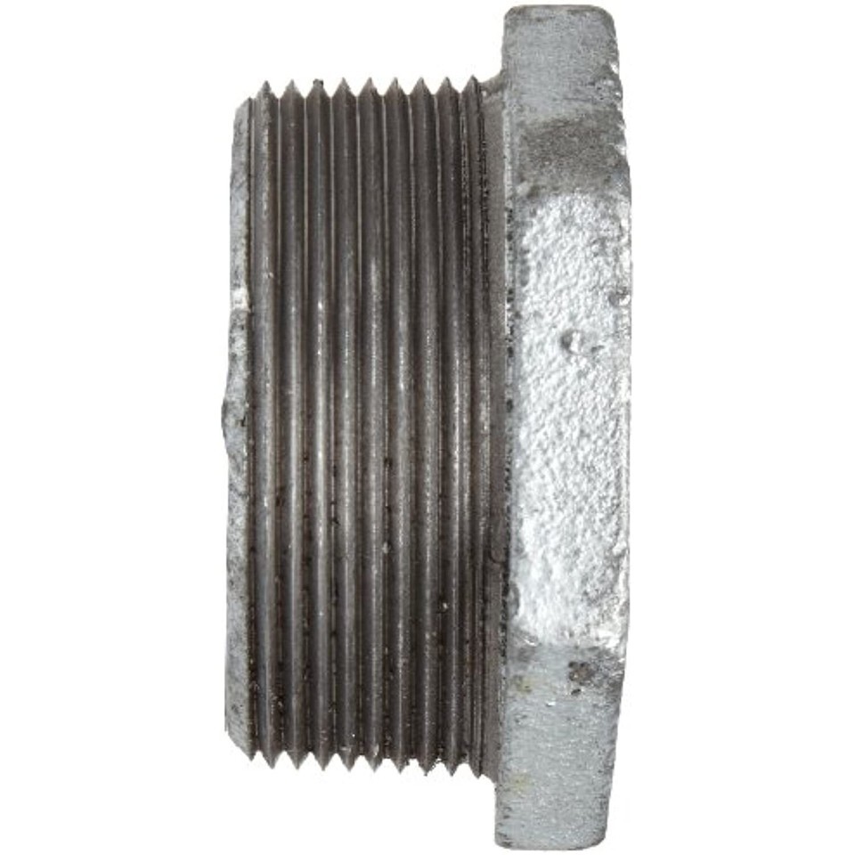 The Anvil hex bushing is a class 150 cast iron pipe fitting with male National Pipe Taper (NPT) threads on the outside and female NPT threads on the inside to connect two pipes of different sizes. It has NPT threads for creating tighter seals than straight threads and a hexagonal head for increased leverage and use with a wrench during installation and disassembly. The bushing is made of cast iron, which has high compressive strength and resistance to wear, with a galvanized finish that resists corrosion in water, air, and steam applications. This class 150 fitting meets standards ASTM A-196(A) and ASME B 16.4 for quality assurance. Class is a standard relating to tolerance, construction, dimension, and wall thickness, but it is not a direct measurement of maximum working pressure.Pipe fittings are components used for connecting, terminating, controlling flow, and changing the direction of piping in many different industries. When purchasing pipe fittings, consider the application, as this will affect material type, shape, size and required durability. Fittings are available threaded or unthreaded, in many shapes, styles, sizes, and schedules (pipe wall thickness).Anvil International provides pipe products and design services. The company, founded in 1850 and headquartered in Portsmouth, NH, meets International Organization for Standardization (ISO) 9001:2000 standards and is certified by the American Petroleum Institute (API). Its fittings meet American Society for Testing and Materials (ASTM) and American Society of Mechanical Engineers (ASME) specifications.