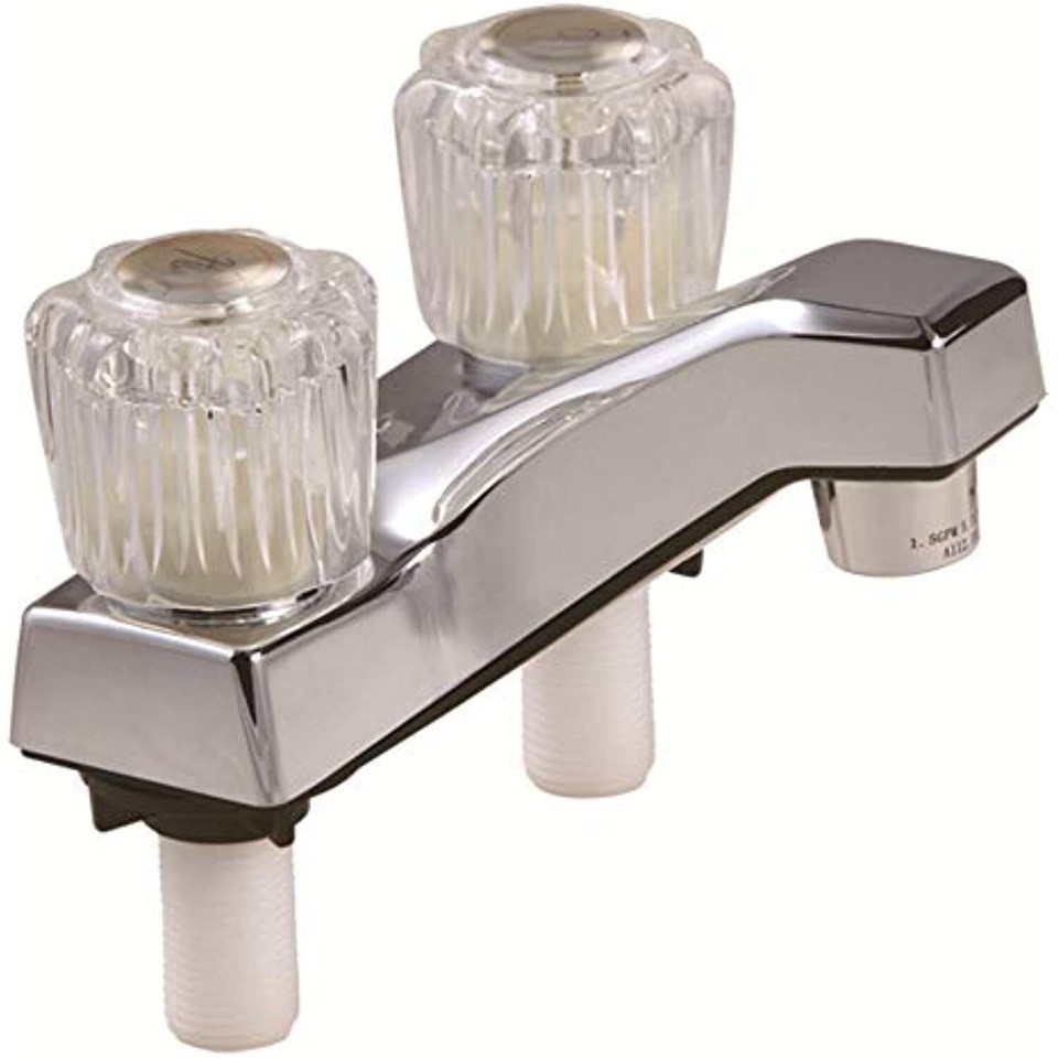 Faucet Type: Two Handle. Finish: Chrome. Spout Type: Low Arc. Finish Type: Chrome. Handle Type: Acrylic knob. Ceramic Disk Valves. Compatibility: Lavatory faucet. Mount Type: Deck. Number of Handles: 2.