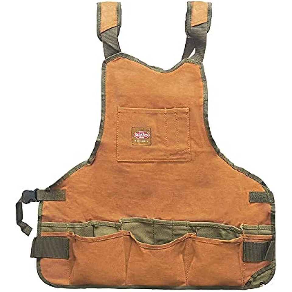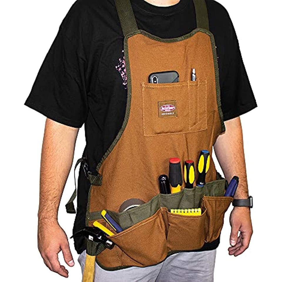 Made with heavy-duty Duckwear canvas, the SuperBib Apron features 16 assorted tool and fastener pockets. It is designed with 2 web hammer loops on each side and adjustable padded shoulder straps with a racer-back design. The waist strap is fully adjustable with a quick-release buckle and can fit up to a 52-inch waist. This apron is ideal for professional carpenters and DIY projects alike.