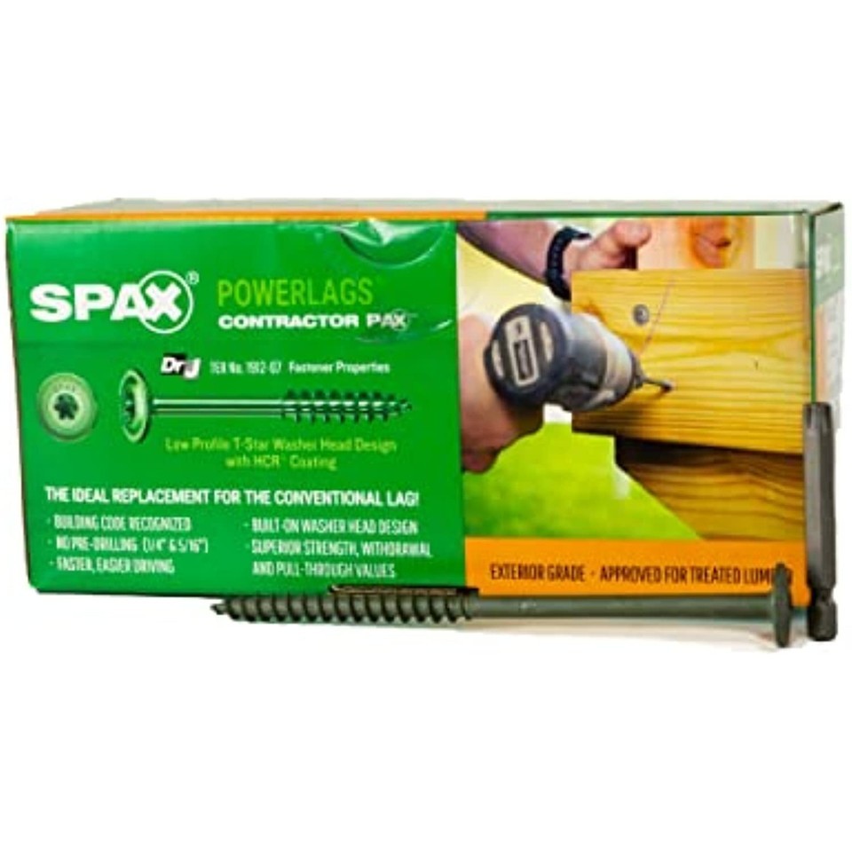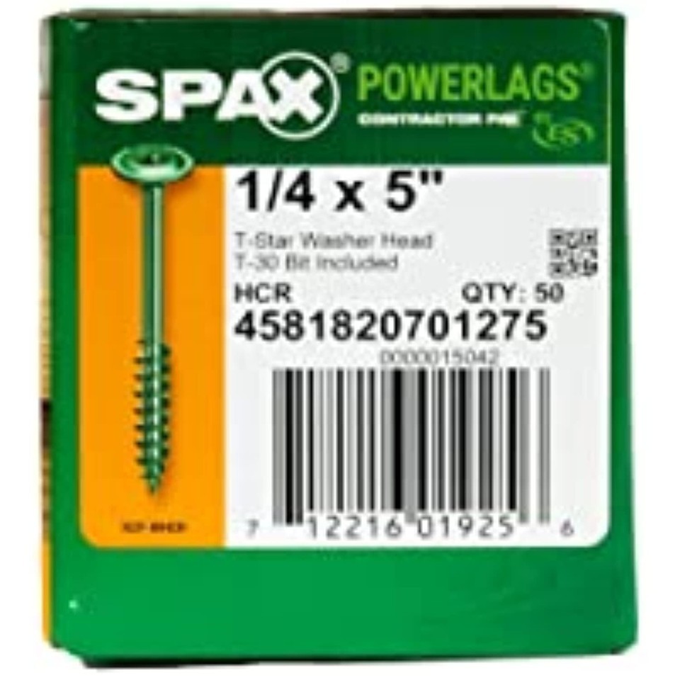 Discover the Spax Advantage! this German engineered/American made Spax 1/4 x 5in. T-star Drive washer head HCR PowerLag offers a premium quality fastening solution to help ensure professional results in less time than inferior imported screws. Say good Bye to your fathers traditional lag. Spax PowerLags offer superior installation performance and durability over traditional lag screws and carriage bolts for structural wood construction. Made of carbon steel and coated for long term durability to ensure your project endures. Do it Once, do it right with Spax.