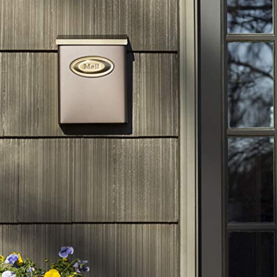 Carefully crafted for the ultimate in styling and security, the medium-sized Designer Locking Wall Mount Mailbox delivers on both aesthetics and functionality. Available in 5 colors, the rust-resistant galvanized steel construction is both durable and never goes out of style. The optional 'Mail' emblem allows you to customize the look and the concealed, locked compartment will keep your mail safe.