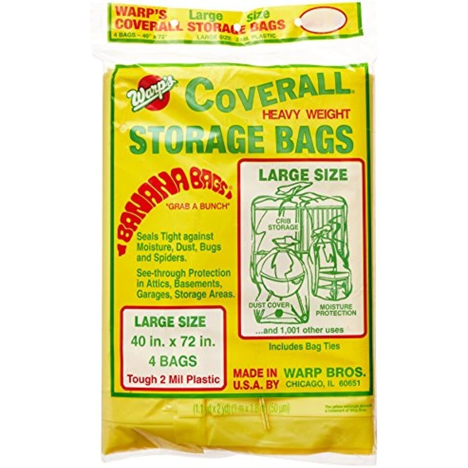 Product Description Warps CB-40 40" X 72" Large Storage Bags 4 Count From the Manufacturer Oversized storage bags protect your large objects against moisture, dust, bugs and spiders. Tough 2 mil plastic is see through to show contents and heavy-weight to resist tears and punctures.