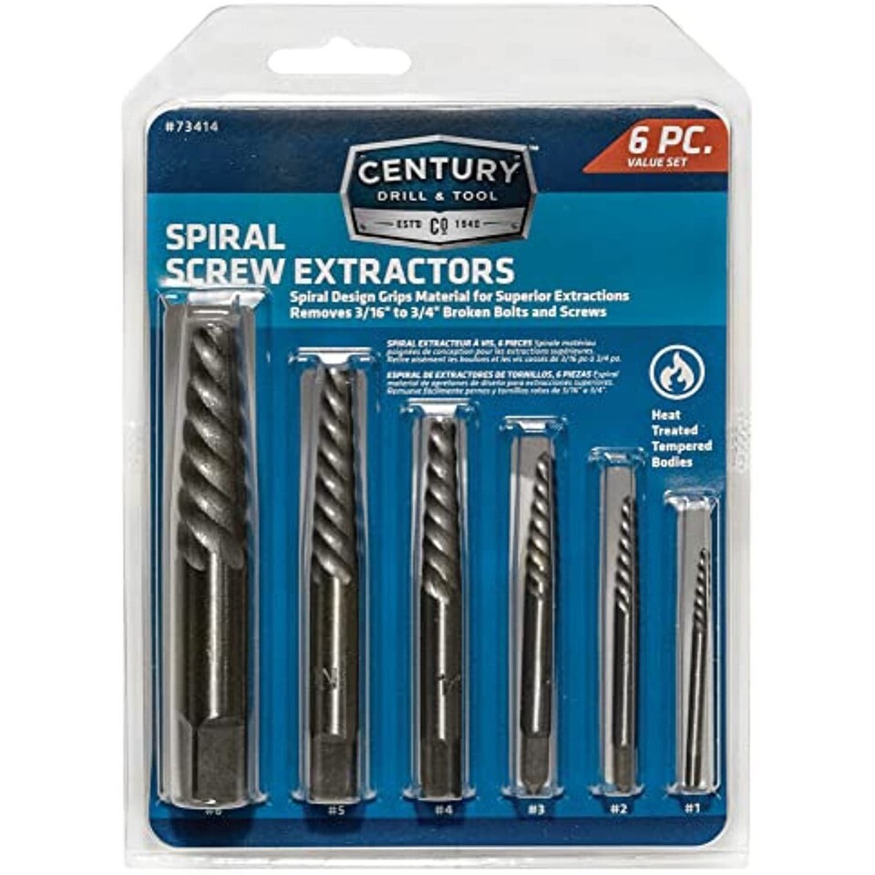 Product Description Screw extractors are used when a screw or bolt has broken off while still in the fastening hole. 6 Piece set includes NO 1, NO 2, NO 3, NO 4, NO 5 and NO 6 screw extractors. From the Manufacturer Screw extractors are used when a screw or bolt has broken off while still in the fastening hole.