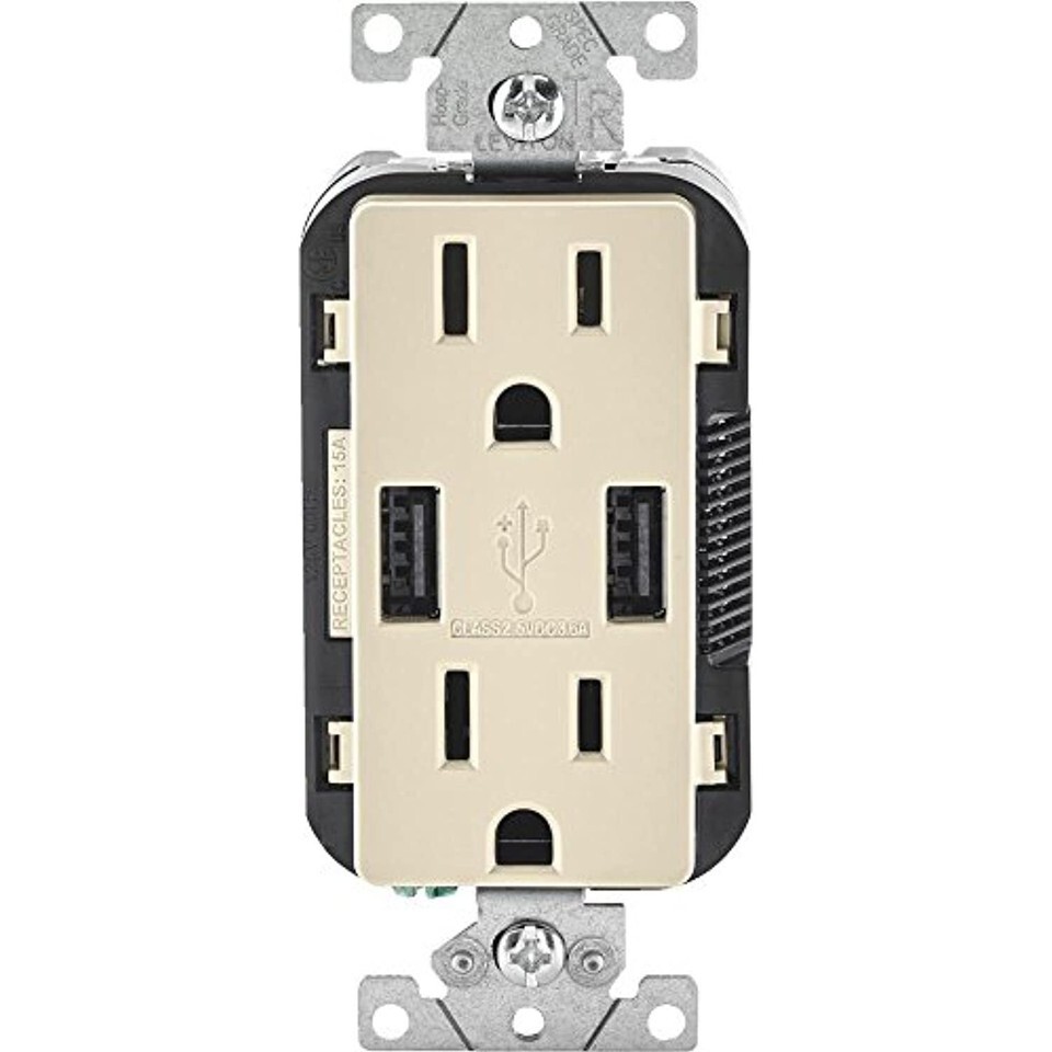 Leviton Decora 15 amps 125 volt Light Almond Outlet and USB Charger 5-15 R 1 pk