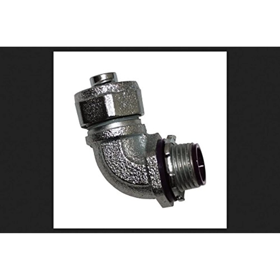 Sigma's 90-degree Liquid-Tight Connectors are used to terminate and seal Liquid-Tight Flexible Metal and Liquid-Tight Non-Metallic Type B conduits at 90-degree angles to either an oil-tight, liquid-tight or rain-tight box or enclosure. Connectors can be used with tapered thread female entry or an unthreaded knockout using the provided sealing washer and locknut.; ; Brand Name: Sigma Engineered Solutions Sub Brand: ProConnex Diameter: 3/4 in. Material: Zinc-Plated Iron Product Type: 90 Degree Connector Conduit Compatibility: Liquid Tight Number in Package: 1 pk UL Listed: Yes Connector Type: 90 Degree Liquid-Tight Connector Packaging Type: Bagged Knockout Original Size: 3/4 in. Indoor or Outdoor: Outdoor