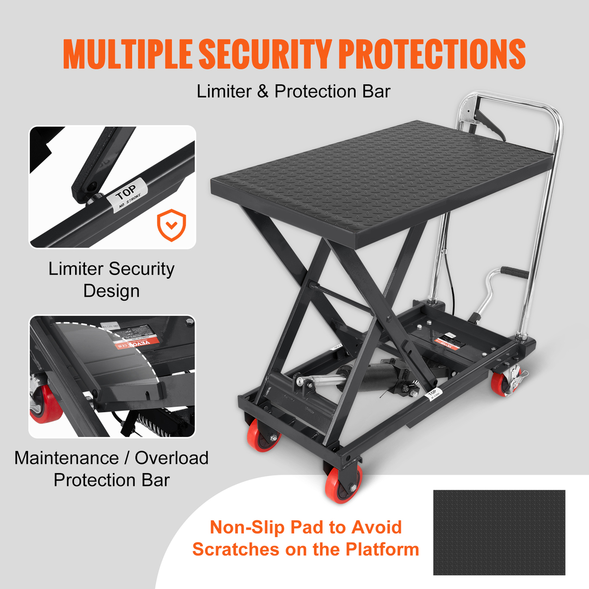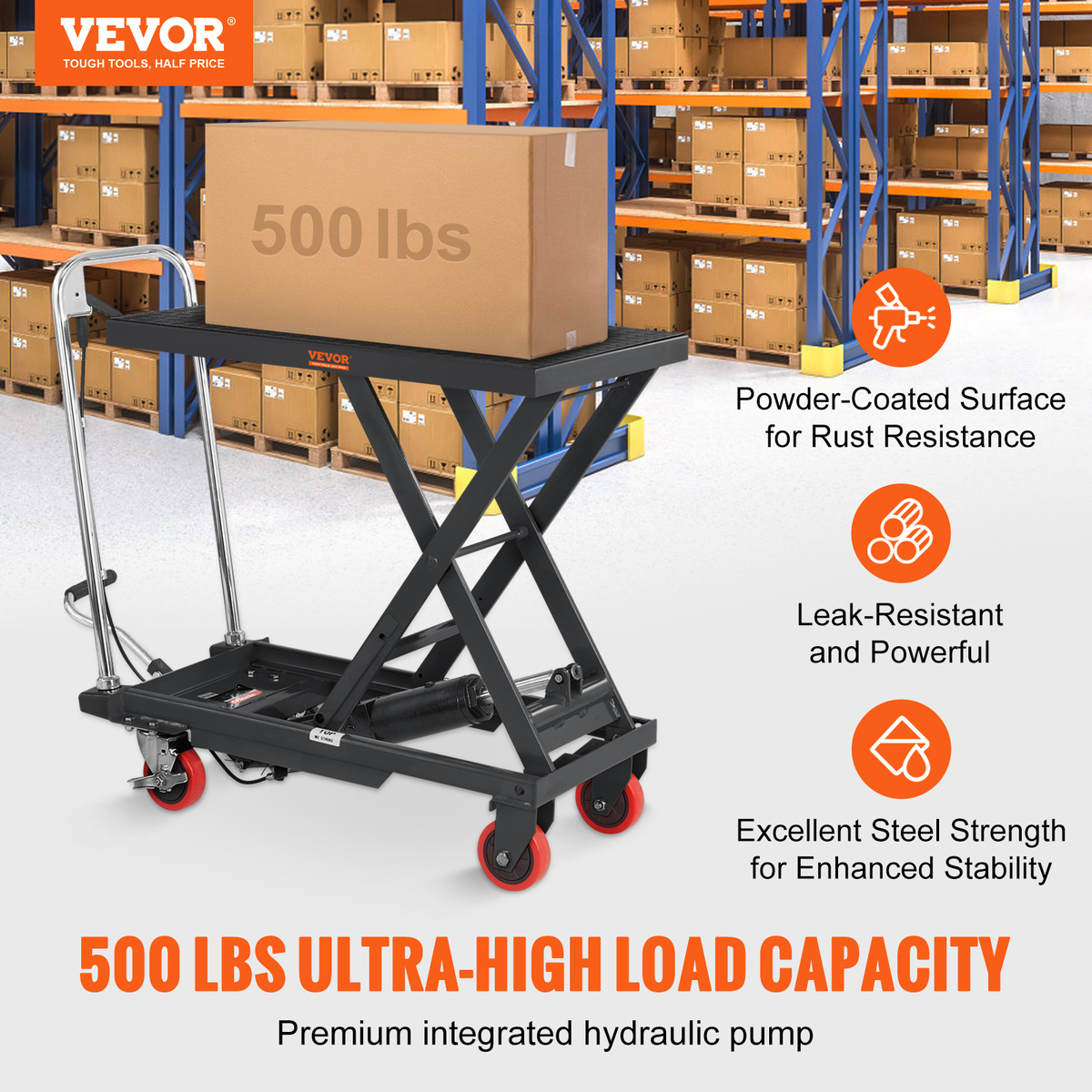 VEVOR Hydraulic Lift Table Cart, 500lbs Capacity 28.5 inch Lifting Height, Black
