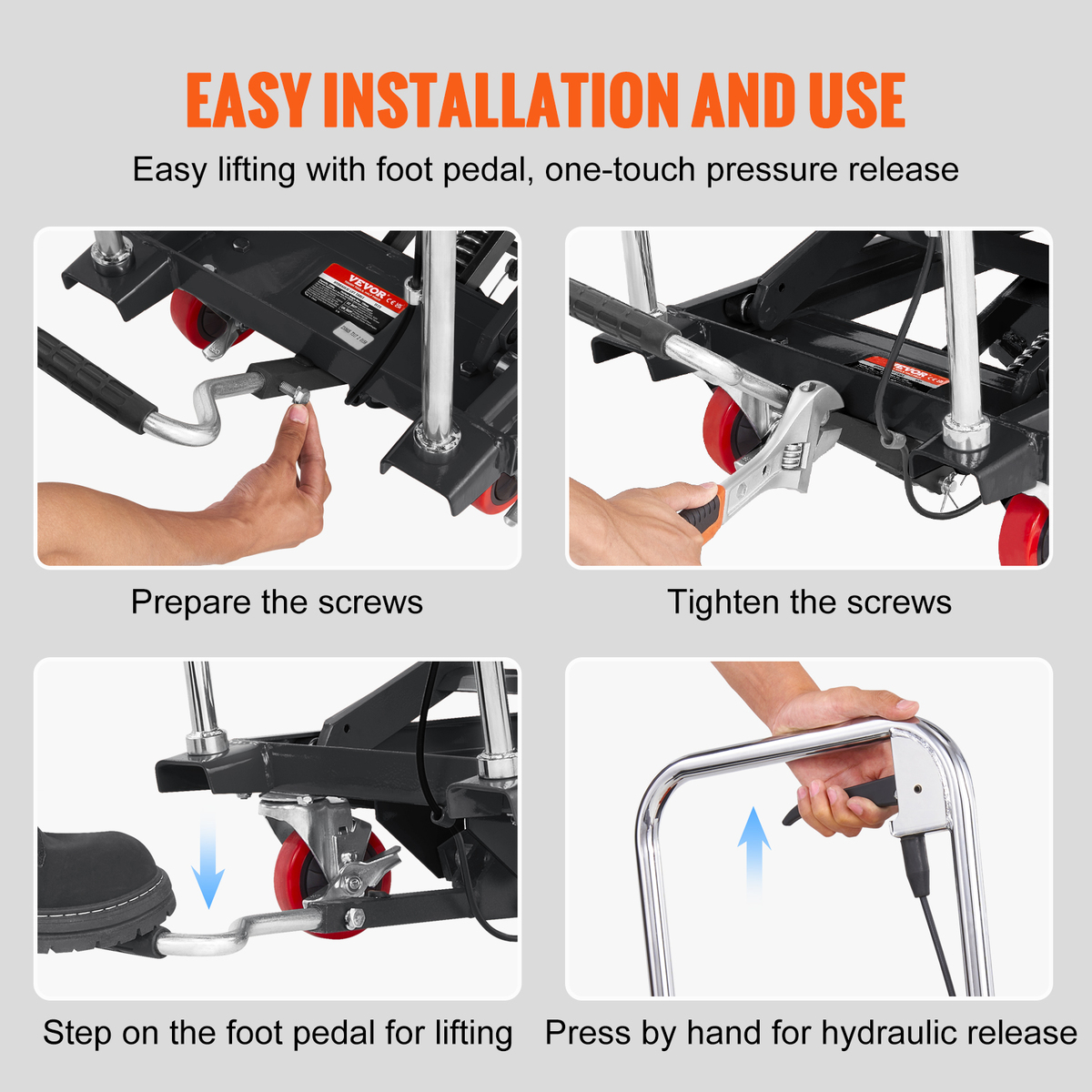 Premium Hydraulic Pump: Experience impressive heights up to 28.5 inches with VEVOR hydraulic lift table cart. Our high-quality integrated hydraulic pump ensures efficient and reliable lifting without any oil leakage issues. Get the power you need for smooth and controlled lifting performance.