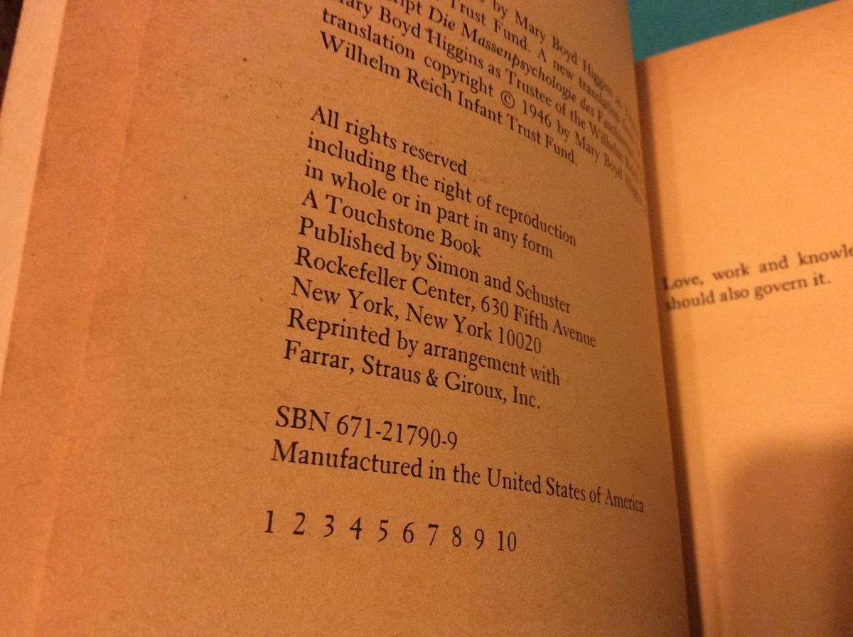 THE MASS PSYCHOLOGY OF FASCISM by WILHHELM REICH - Softcover - FIRST EDITION