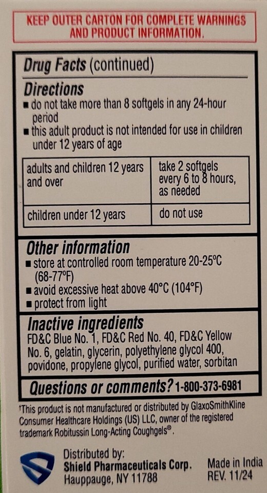 Compares to active ingredient in Robitussin Long-Acting Cough Gels.
