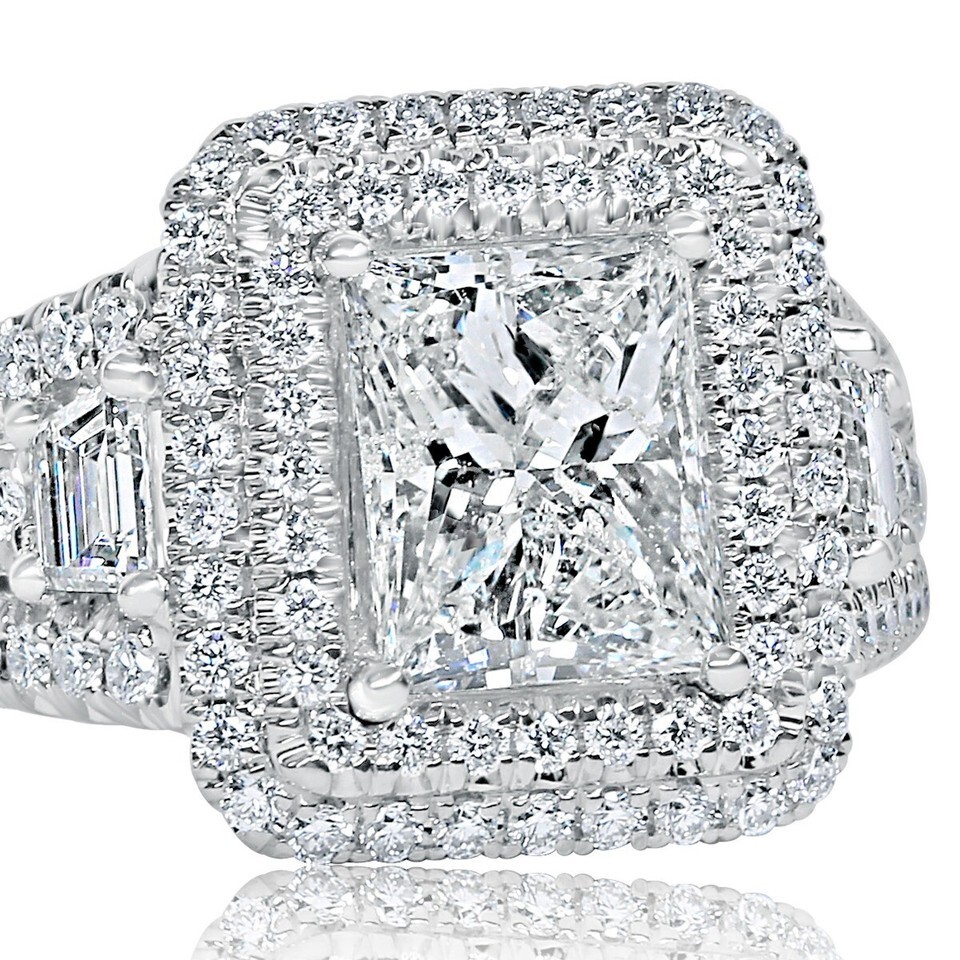 Authenticity Guarantee 2.64 Carat Princess Cut Diamond Trapezoid Side Engage...