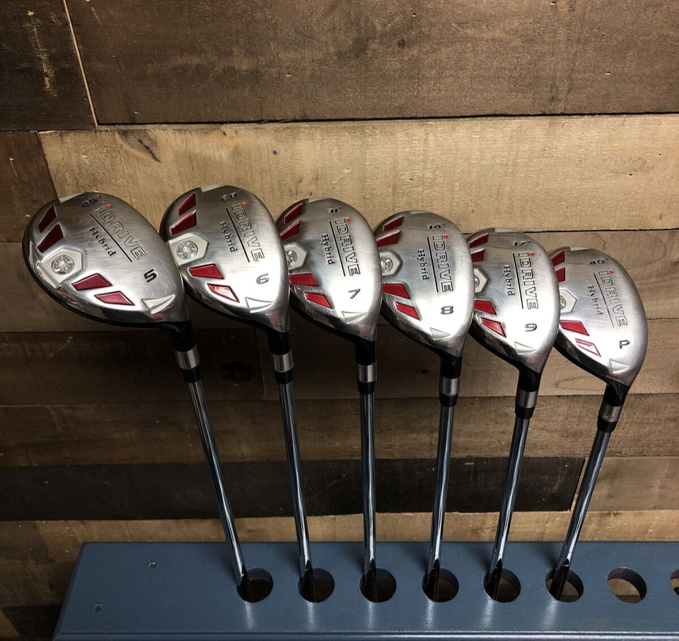Replace Your Entire difficult to use iron set with the iDrive all hybrid iron set! Improve your Hybrid-Iron game! Benefits of the iDrive Hybrid: -More Weight Positioned Behind The "Sweet Spot" -Deeper Cavity Back Creates A Tighter Shot Dispersion, Which Increases The Accuracy On Off Center Hits. -Aerodynamic Design Creates A Reduction In Drag, Which Leads To Higher Club Head Speeds -Wide To Thin Crown Design Creates A Lower CG To Promote Higher Launch Angle For More Distance - Lightweight Premium Graphite Shafts Promotes Faster Swing Speed For Greater Distance. Your Custom Made iDrive Golf Hybrid Is Assembled By Hand In Riverside, CA, USA And Delivered Direct To Your Door.