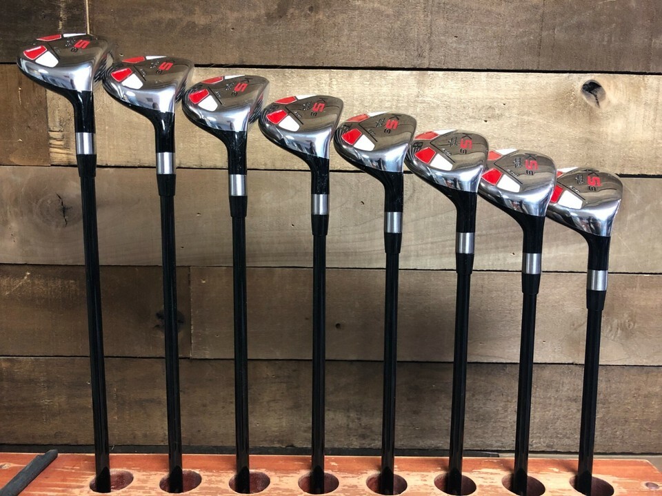 Replace Your Entire difficult to use iron set with the Majek K5 all hybrid iron set! Majekally improve your Hybrid-Iron game! Pure Golf Engineering: Majek Hybrid was Co-Engineered by members of the UCLA's engineering department. This unique relationship and pure engineering approach created the Majek All Hybrid Iron Set. Benefits of the Majek Hybrid: -More Weight Positioned Behind The "Sweet Spot" -Deeper Cavity Back Creates A Tighter Shot Dispersion, Which Increases The Accuracy On Off Center Hits. -Aerodynamic Design Creates A Reduction In Drag, Which Leads To Higher Club Head Speeds -Wide To Thin Crown Design Creates A Lower CG To Promote Higher Launch Angle For More Distance -Lightweight Premium Graphite Shaft Promotes Faster Swing Speed For Greater Distance. -Black Crown And Arrow Markers Make Alignment Easy And Eliminates Glare. Support A Local Company: Your Custom Made Majek Golf Hybrid Is Assembled By Hand In Riverside, CA, USA And Delivered Direct To Your Door.