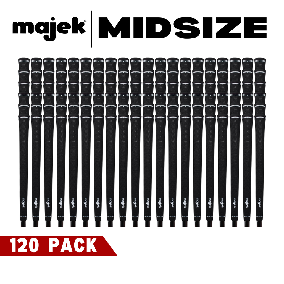 Majek Mens Tour Pro Black Midsize LOGO Golf Grips - 120 PACK