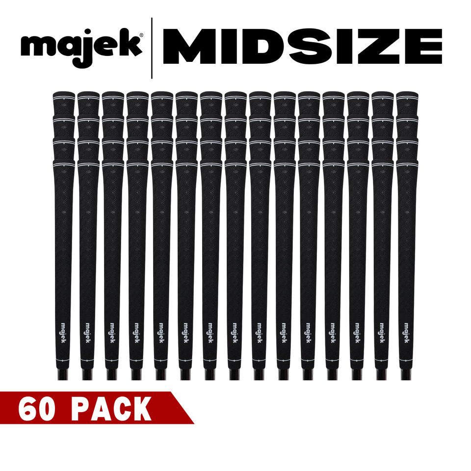 Majek Mens Tour Pro Black Midsize LOGO Golf Grips - 60 PACK