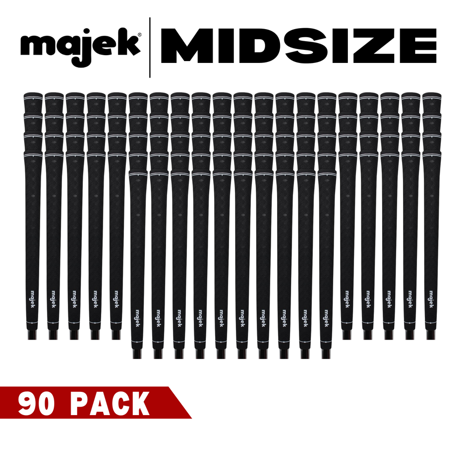 Majek Mens Tour Pro Black Midsize LOGO Golf Grips - 90 PACK