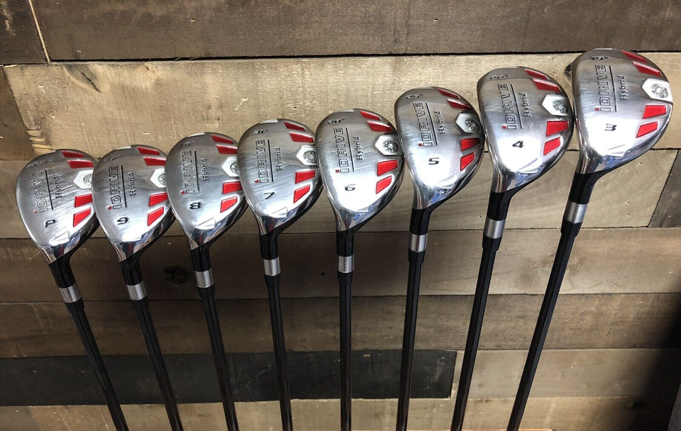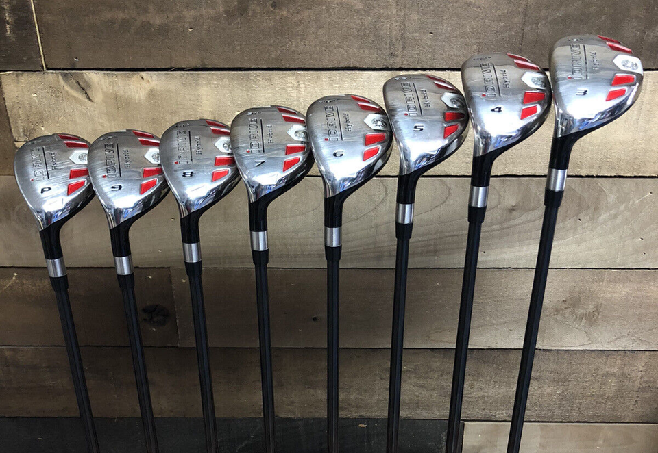 Replace Your Entire difficult to use iron set with the iDrive all hybrid iron set! Improve your Hybrid-Iron game! Benefits of the iDrive Hybrid: -More Weight Positioned Behind The "Sweet Spot" -Deeper Cavity Back Creates A Tighter Shot Dispersion, Which Increases The Accuracy On Off Center Hits. -Aerodynamic Design Creates A Reduction In Drag, Which Leads To Higher Club Head Speeds -Wide To Thin Crown Design Creates A Lower CG To Promote Higher Launch Angle For More Distance - Lightweight Premium Graphite Shafts Promotes Faster Swing Speed For Greater Distance. Your Custom Made iDrive Golf Hybrid Is Assembled By Hand In Riverside, CA, USA And Delivered Direct To Your Door.