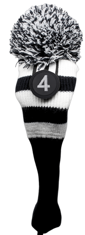 NEW #4 fairway Retro Pom Pom Head Cover Clubs Knit Sock WHITE BLACK Golf Club