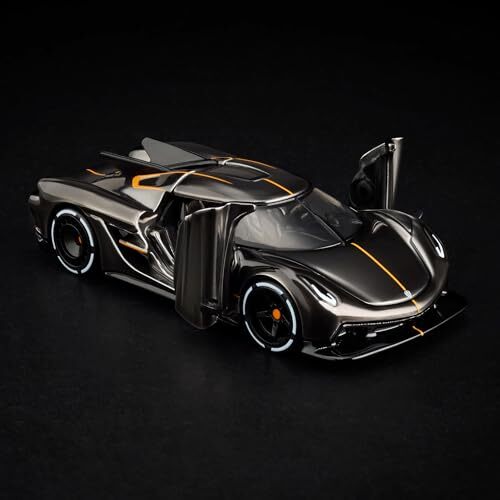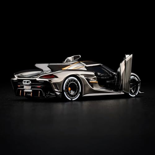 Product description: We?re opening the dihedral synchro-helix actuation doors to one of the most unique cars out there, the Koenigsegg Jesko Absolut. Our die-cast version of the speedy hypercar features unique front-swinging doors, of course. But it doesn?t stop there. We also included Real Riders Aero wheels on the back to recreate the iconic low-drag look of the original.