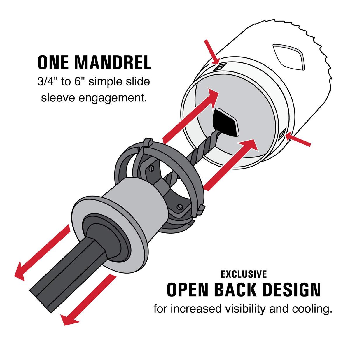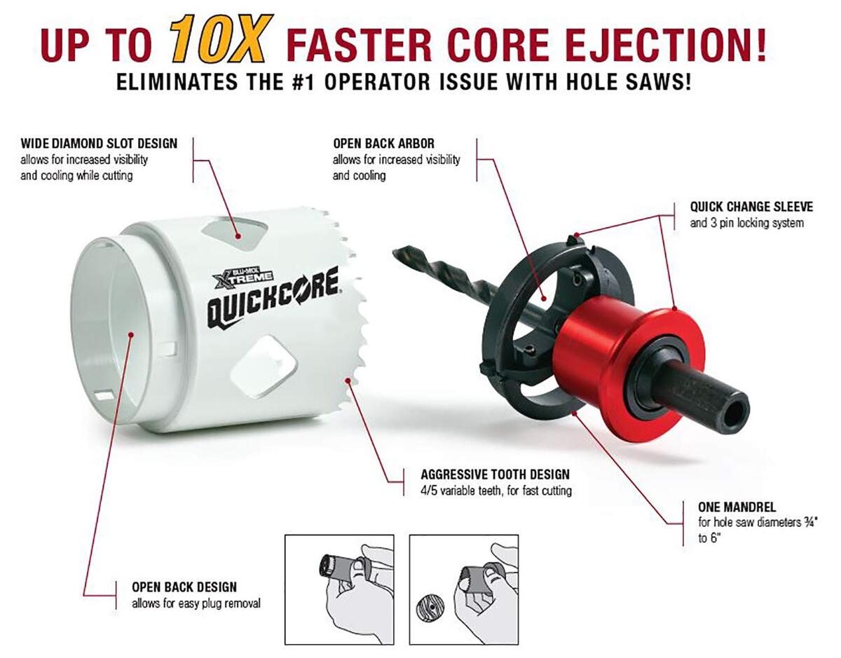 QuickCore Set Hole saws, Arbor with a Pilot Drill bit, Hex Key |