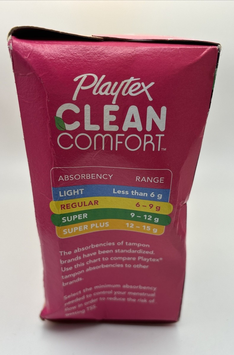 Playtex Clean Comfort Organic Cotton Tampons Duo Pack (14ct Regular/14ct Super). Package may contain shelf ware, retail stickers or cosmetic imperfection Box is damaged.