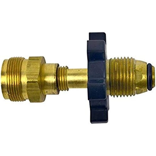 Allows appliances designed for use on throwaway cylinders, and with a hose regulator assembly to be attached directly to a bulk tank. For example, Mr. Camper, Coleman Co Inc, or Century Primus stove. 1-20 male throwaway cylinder thread x P.O.L."