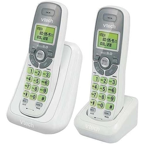Keep it simple at home with the VTech CS6114-2 2 Handset cordless phone. DECT 6.0 Digital technology delivers superior sound quality and range, while ensuring wireless networks and other electronic devices don't interfere with conversations. With the phone's digital security, your calls are digitized and encrypted, making it nearly impossible for someone to eavesdrop. A caller ID/call waiting feature stores up to 30 calls, while text messages on the handset alert you to new voicemails (provided you subscribe to voicemail service through your phone company). Last number redial allows you to quickly redial the last five numbers called. The keypad and LCD screen illuminate, allowing for easier viewing in dim light. Product Details: DECT 6.0 Digital Technology 2 Handset Phone Interference Free for Crystal Clear Conversations Caller ID / Call Waiting-Backlit Keypad and Display 30 Name and Number Phonebook Wall mountable, but not on a standard phone wall plate