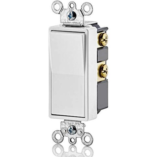 Product Description Leviton Rocker Switch, Series: Decora, 120/277 VAC, 15 A, Contact Configuration: 4-Way, AC Quiet, 1 Poles, Quick wire Push-In, Side Wire Terminal, 4.2 in Overall Length, 1.31 in Overall Width, Thermoplastic Polyester, White, CSA Certified, UL Listed. Leviton Rocker Switch, Series: Decora, 120/277 VAC, 15 A, Contact Configuration: 4-Way, AC Quiet, 1 Poles, Quick wire Push-In, Side Wire Terminal, 4.2 in Overall Length, 1.31 in Overall Width, Thermoplastic Polyester, White, CSA Certified, UL Listed. From the Manufacturer The Leviton Residential Grade 15A 125V 4-way White Decora (R) Switch with ground adds contemporary styling to any decor. Designed for a long lasting trouble free life. Choose Decora brand style for any room, whole house remodel or new construction project. SPECIFICATIONS AND FEATURES: Side and Quick-Wire (no. 12 or 14 awg copper or copper-clad wire) push in wiring options. Switch frame shields against dust and fits in wall plate to prevent rocker binding. Full rated current capacity with tungsten, fluorescent or resistive loads. Motor capacity is 80% of switch rating. TESTING AND CODE COMPLIANCE: UL listed, CSA Certified, NOM Certified, and Backed by a Limited Two Year Warranty. HORSEPOWER: 15A: 1/1 at 120V, 2 at 240V. MATERIAL CHARACTERISTICS: Environmental: Flammability UL 94, V2 Rating. Operating Temperature: -40 to 120 degrees C. #112-05604-2WS. Decora is a registered trademark of Leviton Mfg. Co., Inc.