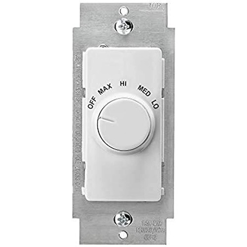 Product Description Leviton Fan Speed Control, Series: Decora, 120 VAC, 60 Hz, 1.5 A, White Switch, Includes: 1 Gang Wall plate, CSA Certified, UL Listed, 1 Pole. DECOR ROTRY FAN CNTRL WH. From the Manufacturer Leviton White Fan Control - Illumatech Decora (R) brand style is ideal for ceiling fans with 3 speed motors. 1.5Amp Fan Control, Single pole, non-illuminated. #R02-RTF01-10W BOX MOUNT FAN CONTROLS: Combines traditional rotary dial with contemporary Decora brand styling. Compatible with Decora Screwless, Standard and Nylon wall plates. Slim compact housing fits easily into standard wallbox. Quiet fan speed control is perfect for libraries, study rooms and any area where Ceiling fan noise could become distracting. Suitable for use in multi-gang applications. Dimensions: 4.12"H x 1.73"W x 1.30"D. TESTING AND CODE COMPLIANCE: UL Listed, CSA Certified Backed by a Limited 5 Year Warranty. MATERIAL CHARACTERISTICS: Environmental: Flammability UL94,v2 Rating Operating temperature: 32 to 130 degrees F. Decora is a registered trademark of Leviton Mfg. Co., Inc.