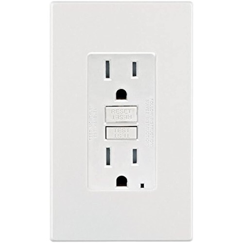 Highlights: Color : White Volts : 125 Volts Material : Thermoplastic Maximum Amperage : 15 amps Nema Type : 1-15 R Receptacle Outlet Type : Self Test Weather Resistant : No Decorative : No GFCI : Yes Tamper Resistant UL Listed Wall Plate Included Indoor and Outdoor : Indoor Comes with Screwless wall plate Auto-monitoring exceeds the UL requirement Electronics are designed to minimize any false triggers Standard brass self-grounding clip Reduced depth makes it easier to install in any electrical box, even shallow ones Packaging Type : Boxed