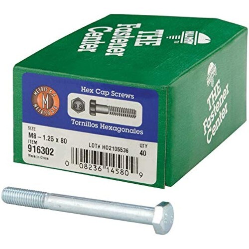M8-1.25 x 80 mm. Hex cap. Fine thread. Zinc plated steel. Box of 40.