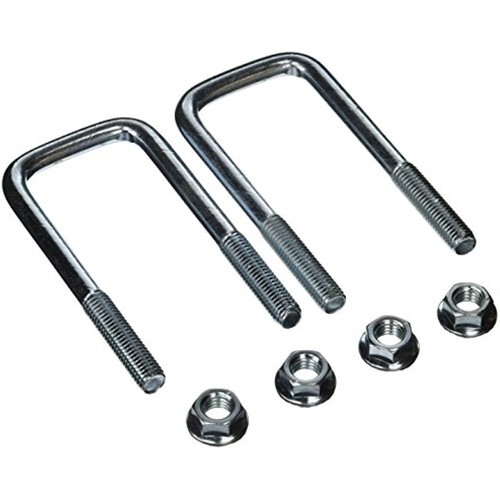 Trailer axle U-bolt kit, for 2 inch square axles, 1/2 inch diameter rod with rolled threads for maximum strength, 5 1/4 inch long legs, zinc plated for maximum corrosion resistance, includes 2 U-bolts 4 nuts.