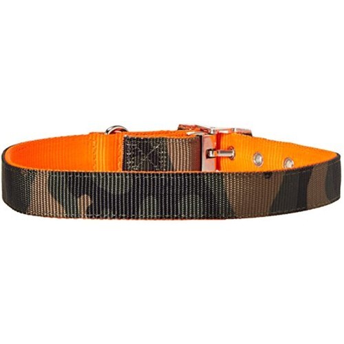 Pet Expert Reversible Dog Collar features 2 fun styles in one collar, camouflage pattern on one side and safety orange on the other. Specially designed to deliver comfortable wear and optimal durability. Features a metal buckle allowing for hassle-free use. Product is available in large and measures 1" x 20-24".
