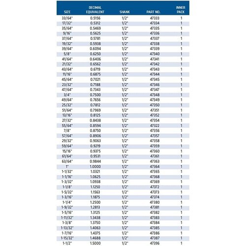 Reduced 1/2-Inch shank fits all 1/2-Inch or larger chucks