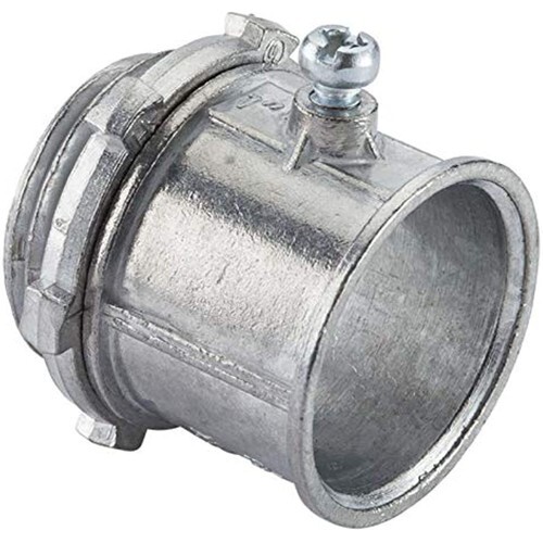 The 1/2 in. EMT Set-Screw Connector is made of zinc and is compatible with EMT conduit. This standard fitting is for indoor applications. The connector is UL- and CSA listed.