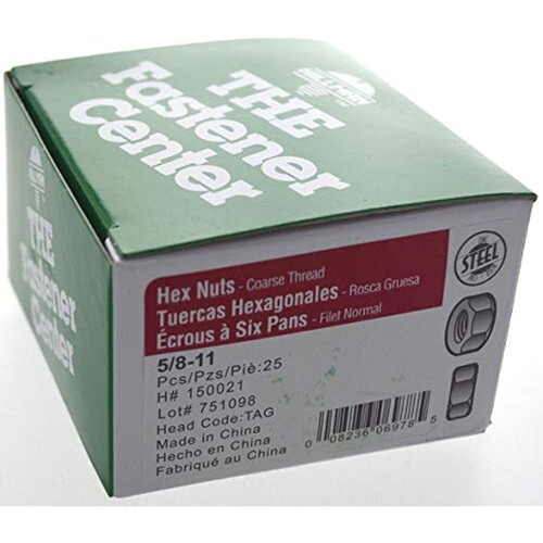Coarse thread, zinc plated steel. Pack of 25. 5/8-11 Coarse thread Zinc plated steel Hex nut 25 Pack.