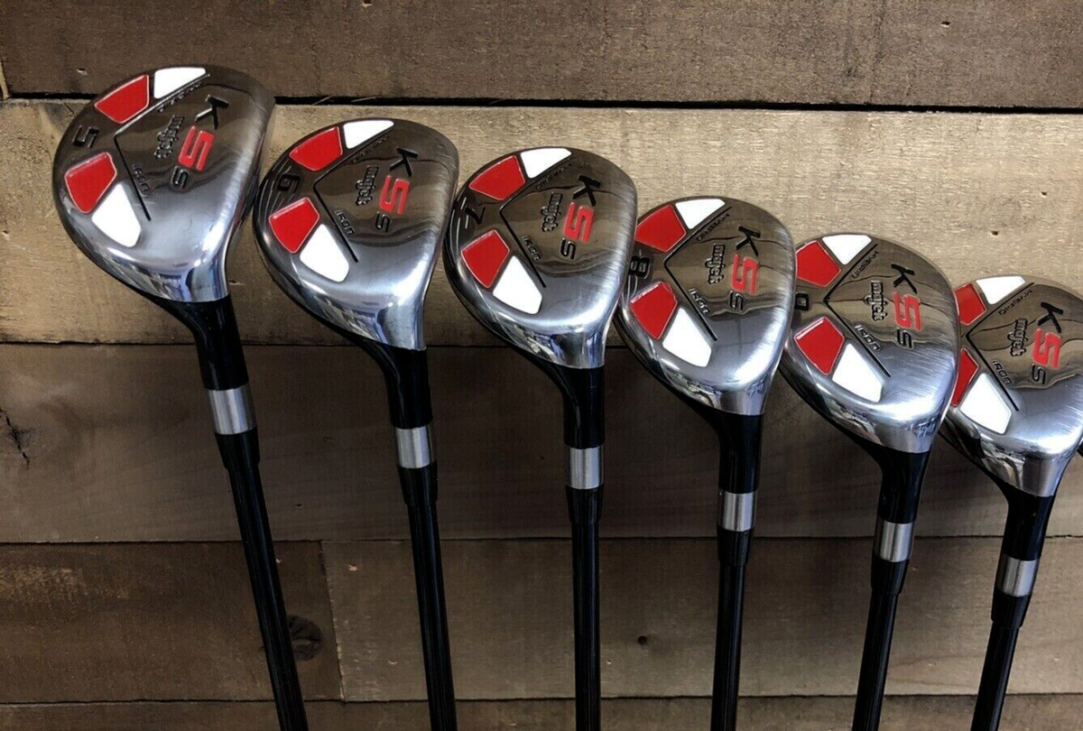 Replace Your Entire difficult to use iron set with the Majek K5 all hybrid iron set! Majekally improve your Hybrid-Iron game! Pure Golf Engineering: Majek Hybrid was Co-Engineered by members of the UCLA's engineering department. This unique relationship and pure engineering approach created the Majek All Hybrid Iron Set. Benefits of the Majek Hybrid: -More Weight Positioned Behind The "Sweet Spot" -Deeper Cavity Back Creates A Tighter Shot Dispersion, Which Increases The Accuracy On Off Center Hits. -Aerodynamic Design Creates A Reduction In Drag, Which Leads To Higher Club Head Speeds -Wide To Thin Crown Design Creates A Lower CG To Promote Higher Launch Angle For More Distance -Lightweight Premium Graphite Shaft Promotes Faster Swing Speed For Greater Distance. -Black Crown And Arrow Markers Make Alignment Easy And Eliminates Glare. Support A Local Company: Your Custom Made Majek Golf Hybrid Is Assembled By Hand In Riverside, CA, USA And Delivered Direct To Your Door.