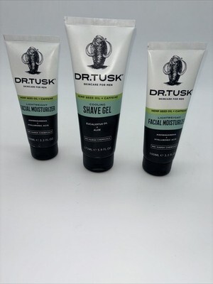 3pc Set! Dr Tusk (2)Lightweight Facial Moisturizer 3.3fl oz (1) Shave Gel. 5.9 fl oz