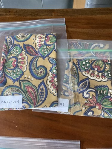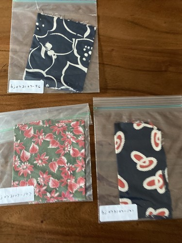 17 pieces of rayon fabric straight from the designer in the 1940s. This includes some great florals, paisley, intertwined rings, wagon wheels, cowboy boots, military, cherries. There?s an 18 inch patchwork section and one piece of fabric that?s also app. 18 in. Sq . These are all just sample sizes, 8? inches to a foot or larger big.Great to make a quilt top or just use for historical research. Might be able to make doll clothes even. Please askQuestions.