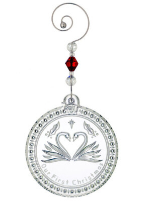 Waterford Our First Christmas 2011 Crystal Ornament Swans/Heart/Jewel Hanger New